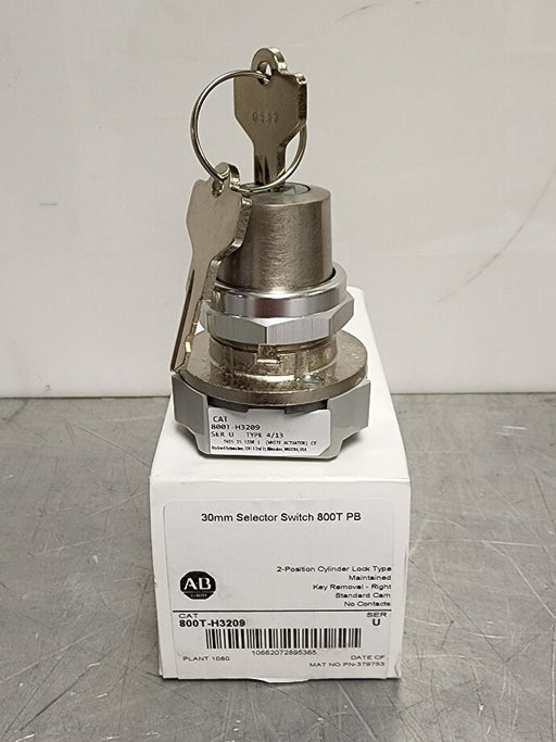 800T PB,30mm Selector Switch,2 Position Selector Switch,Standard Cam, No Guards - on Terminals,No Block in Position 1,No Block in Position 2,No Block in Position 3,No Block in Position 4,Maint., Lock - Right, Std. Key,D020,Device with Packaging