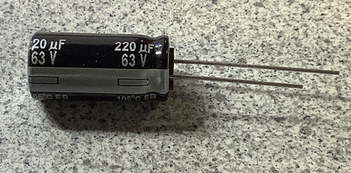 $12.00PANASONIC EB 220uF , 63V, 20%, radial capacitors 10.000 hrs @ 105C (10 X 20mm)