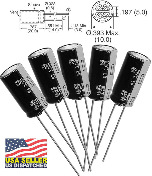 $10.99PANASONIC EB 220uF , 63V, 20%, radial capacitors 10.000 hrs (5) Pcs