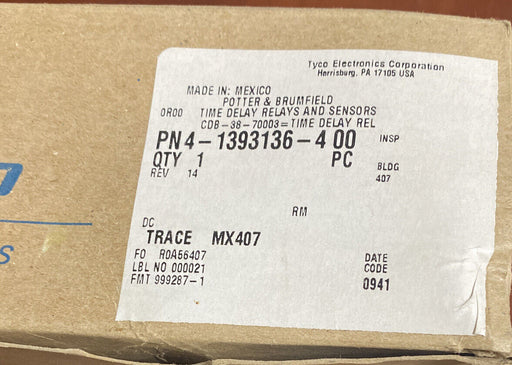 $389.00Potter & Brumfield, CDB-38-70003, Tyco 4-1393136-4 Time Delay Relay 0.1-10 sec