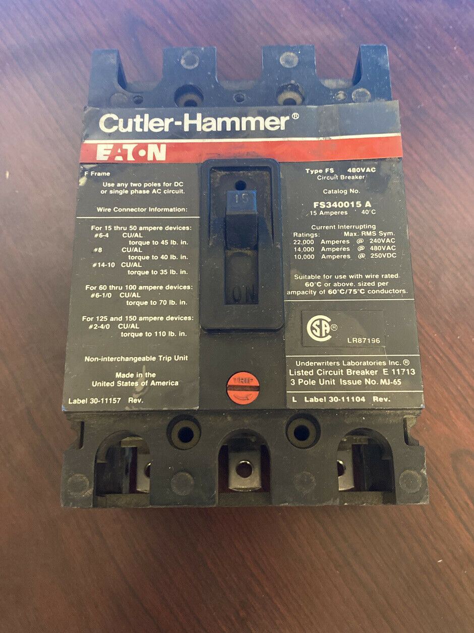Cutler Hammer FS340015A, 15 AMP 3 POLE 480 VOLT Circuit Breaker