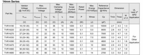$3.994pc VARISTOR 56V 1KA DISC 14MM MOV14D560K TVR14560